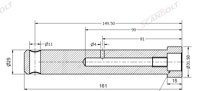 Bolt Ø25x161L m. smøring & låsehull