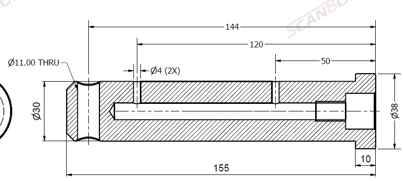 Bolt Ø30x155L m. smøring & låsehull