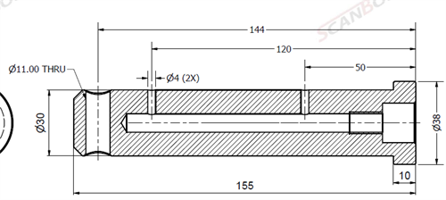 Ø30x155L m. smøring & låsehull
