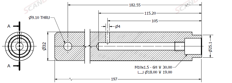 Ø32x197L m. smøring & låsehull