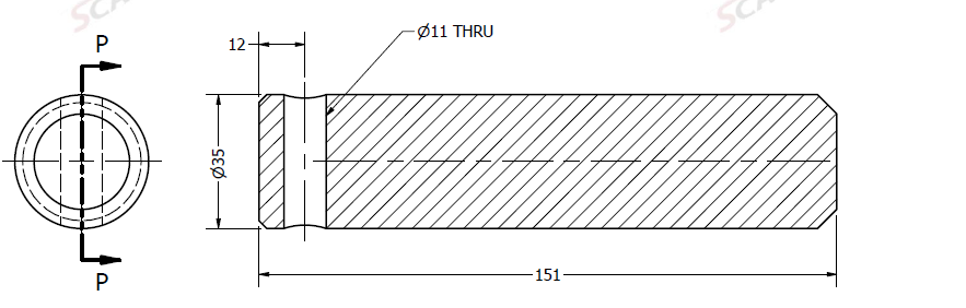 Ø35x151L u. smøring & m. låsehull
