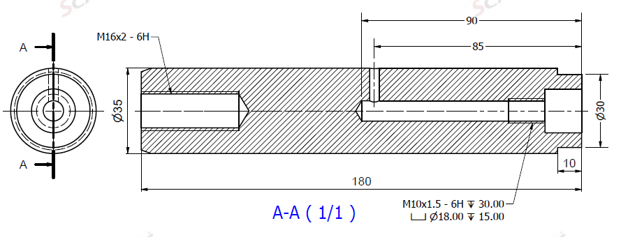 Bolt Ø35x180L m. smøring & u. låsehul