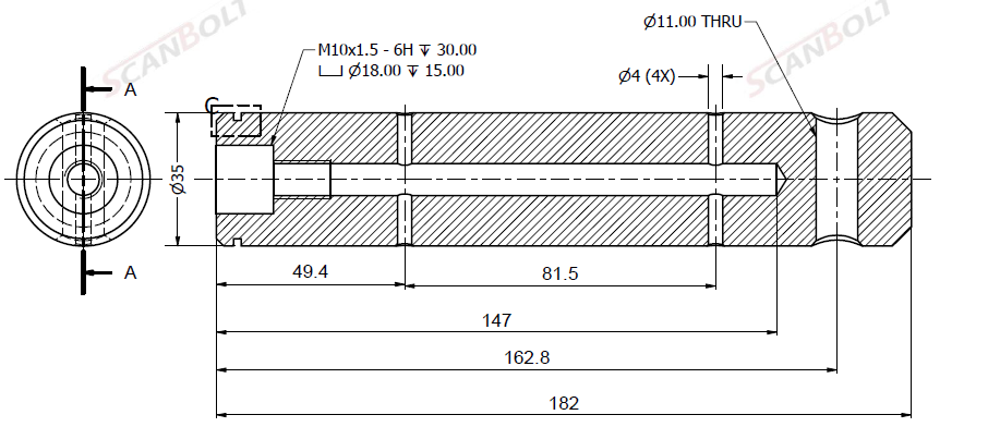 Bolt Ø35x182L m. smøring & låsehul