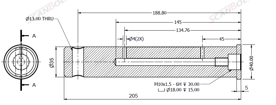 Bolt Ø35x205L m. smøring & låsehul