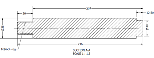 Bolt Ø38x236L u. smøring & u. låsehul