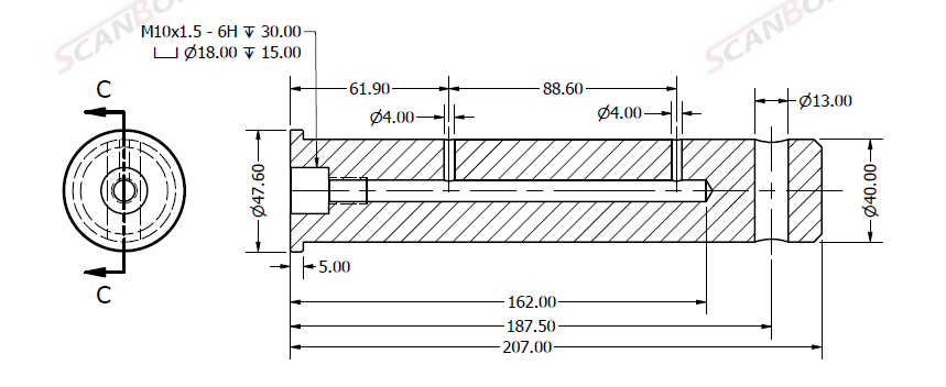 • Lengde til senterhull fra innside av låseplate: 182,50 mm