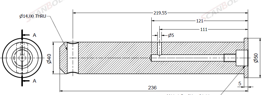Herdet stålbolt Aksel Ø25x145 Bolt til skuffe Bolt til oppheng Anleggsmaskin reservedeler