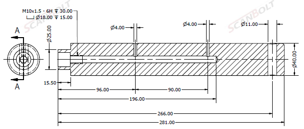 Bolt Ø40x281L m. smøring & låsehull